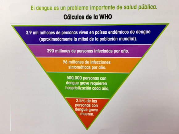 El haber padecido Dengue NO confiere protección contra los 4 serotipos, se puede volver a padecer y ello aumenta la posibilidade de presentar formas graves de Dengue. La vacuna debe aplicarse sólo si ya se ha padecido la enfermedad o si radica en áreas de muy alta prevalencia de le enfermedad. A diferencia de otras enfermedades de localización específica y que se transmiten por el mismo mosquito Aedes (Fiebre Amarilla, Chikungunya, Zika y el Virus Mayaro), el Dengue se encuentra prácticamente en todo el mundo. |